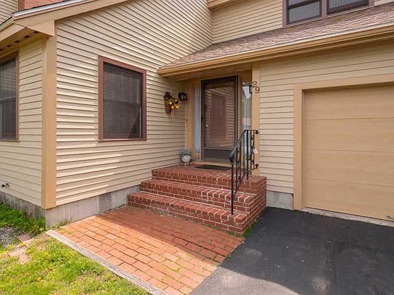 Highly desirable Folsom Acres 2 BR, 2.5 BA, 1663 sqft townhouse with a second floor hardwood master ensuite. This home offers a tiled entry, vaulted ceilings in the main living area with skylights, a wood burning fireplace, custom wood features and beautiful hardwood floors. Other amenities include central AC & VAC, updated stainless appliances and a screen porch with a very private brick patio overlooking a serene and natural setting. A lovely way to enjoy the best of our New England spring, summer and fall weather! There is plenty of storage throughout this meticulously maintained unit with the comfort of a single family home and ease of condominium living. The full basement houses a heat and hot water system upgraded in 2016, an active radon mitigation system, a work bench, a security system (requires activation) and bulkhead access to the patio. This is a pre-inspected home with an over sized two car garage and large dedicated driveway. Enjoy the benefits of public utilities (natural gas, water & sewer), convenient access to downtown Exeter, SAU16 schools, proximity to the Seacoast, Lakes and Mountains and all major commuter routes (North, South and West) from this beautiful location. Welcome home to 29 Prentiss Way, Exeter, NH!