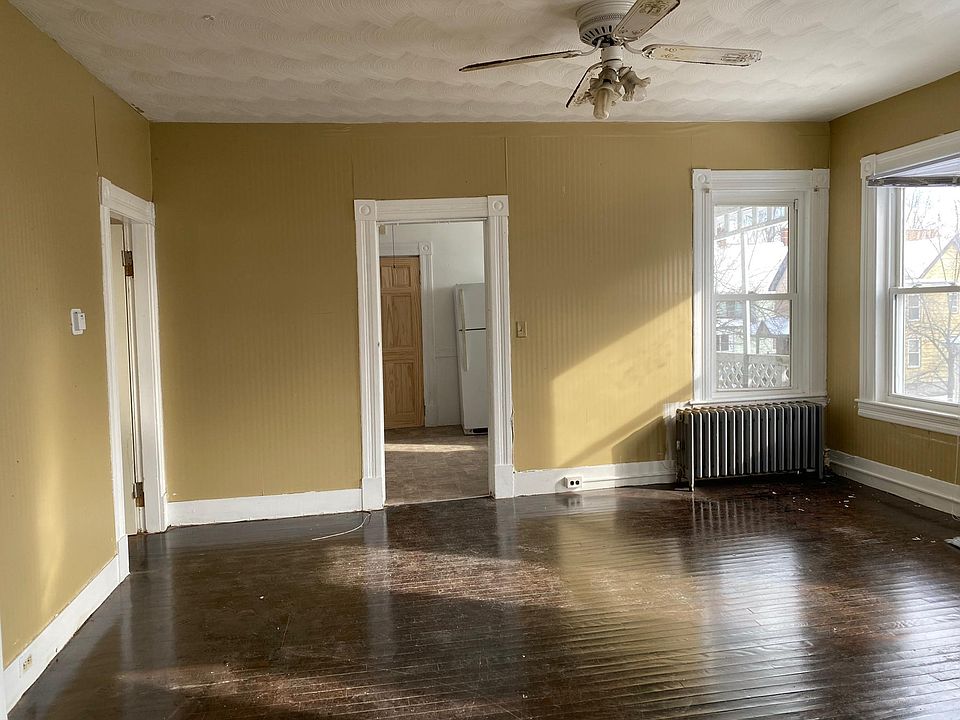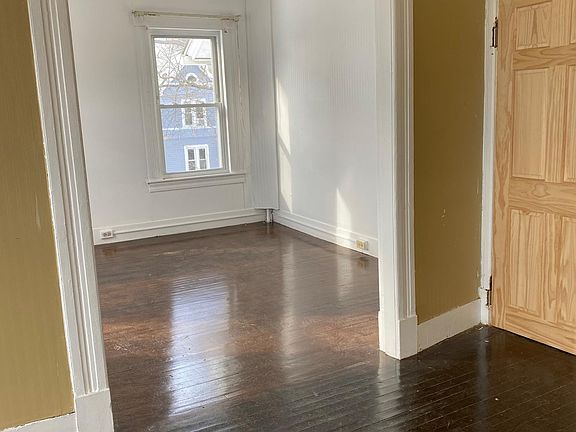 Two bedroom/1 bath apartment on second floor of two family house. Corner house on side street in a convenient location. Hardwood floors throughout bedrooms and living room. Extra room off of living room could be used as dining room, office, or an additional living space. First, last and security are due upon move in. Background and Credit check required. Tenant responsible for gas and electric. Landlord responsible for water, trash, and security system.