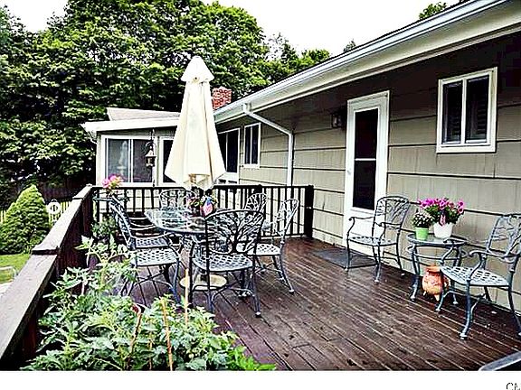 Beautiful updated spacious ranch on 1.86 acres. A private and level setting with beautiful heated in ground pool. Remodeled baths and kitchen with butler pantry with plenty of storage. New windows and doors. New driveway and garage doors . New septic, central air and furnace in 1995. Hardwood floors throughout most of the main level including all bedrooms. Three season sunroom overlooking backyard. An additional 780 ft.² in the lower level game room with a walk out to patio and pool. Additional space in lower-level to accommodate an Inlaw set up. Terrific school system and Local amenities including shopping/mall, golf courses, health clubs, playgrounds and parks. Move right into this home and enjoy. A Must See