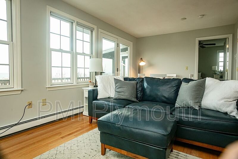 Unique & Spacious 3+ bedroom, 2 full bath Contemporary Jewel located high above the tree line on sought after Strawberry Hill w/ unobstructed ocean views & NO FLOOD INSURANCE needed. This recently built 12 year "young" home is within walking distance to Nantasket Beach & offers a stylish layout perfect for many settings. The interior boasts a beautiful "chefs" kitchen w/ gleaming hardwood floors & Cherry cabinets which then opens up to the nice size living/dining room area w/ wood burning stove & high ceilings everywhere you look !!. There is an expansive & private rear deck AND screened-in porch w/ some of the best ocean views this town has to offer. The lower level is fully finished & could be used in a variety of ways. Many added features including full-house back-up Generator, central Vac & more. The exterior's wood shingle home is well cared for w/ low exterior & outside maintenance. It's a million dollar view for half the price! Must see home and location.