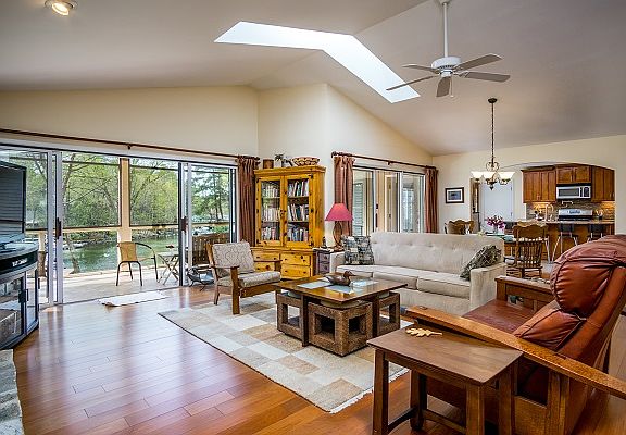 Your lake house is here! A rare opportunity to live in an amazing 4-bedroom/2.5-bath waterfront home with dock in the desirable community of River Hills. Enjoy resort like living within walking distance to the marina, clubhouse, golf, pool, sports courts, walking trails, parks, community gardens, playgrounds and swimming beach. This home provides over 2,900 sq ft of living space and offers stunning lake views! Enjoy entertaining in the spacious great room with vaulted ceilings, a double sided gas log stone fireplace and hardwood floors. The kitchen is fully renovated and updated with generous counter space, stainless steel appliances, convection oven, granite countertops, slate backsplash, pot-filler and is open to the living/dining room. Large master bedroom suite on main features a walk in closet and deck to enjoy more lake views. Master bath has travertine oversized walk in shower, granite countertops and double sinks. The 3 additional bedrooms are nicely sized with plenty of closet space. Front loading stacked washer/dryer are on main level. A shared dock is included, so bring your boat! There's space for projects with large workshop, workbench and tons of storage. You'll love the outdoor living space including a huge screened porch and covered patio. Some landscaping is included. River Hills provides a lifestyle that is unmatched in the Lake Wylie area. With beautiful, mature trees and landscaping, this amazing country club community "welcomes you home" and is gated with 24 hour security. Home is also in the top rated Clover school district. This home is non-smoking/non-vaping, and renter's insurance is required. Available for move-in around mid-March at only $2995/month. Call now to schedule your showing.