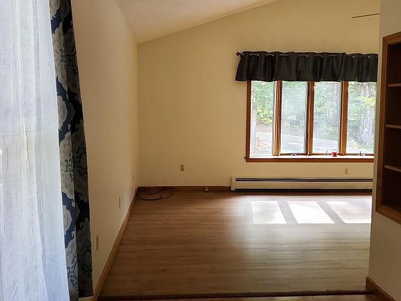 This is a sunny, attractive, two-bedroom rural apartment in a quiet two-unit building on a large 15 acre lot, gardening possibilities a pond, and trees. Great neighborhood with lots of walkers, and quiet neighbors. This is a non-smoking property. 15 minutes from the turnpike. Looking for quiet, respectful, responsible tenants. It has a cathedral ceiling LR, and a nice big kitchen, a dishwasher, a washer dryer in laundry room, plenty of bedroom closet space, and two baths. Floors are wood finish. Baseboard fhw heat. Ceiling fans. There is garage parking for one vehicle. Large backyard Security deposit required. Non-smokers only please. A well-mannered pet with good references would be considered. Please send your email address so application can be sent. Owner pays septic, water Plowed parking Garage available for one vehicle Thrifty heat No smoking on property One year lease.