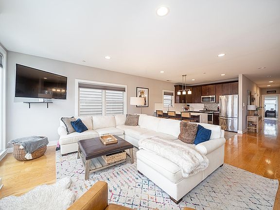 Sprawling 1200 SF 3 bed / 2 bad with private roof deck and garage parking in The Heights! Only six years young, this modern-designed home is perfect for a growing family or separate shares. Two flights up, enter into the chefs kitchen featuring custom waterfall quartz countertops and breakfast bar, dark wood shaker-style cabinetry, glass tile backsplash, and stainless-steel appliances. An entertainer's dream, the floorplan opens into a sun-filled dining / living area enhanced with gas-burning fireplace. Down the hallway, you will find a dreamy primary bedroom with en-suite bath and walk-in closet, two queen sized bedrooms, and full bath with tub. Access the outdoor oasis up an internal staircase to relax in the sun or dine al fresco. In-unit washer dryer, on-site garage parking, central air and storage galore complete this special home. With close proximity to JC Heights nightlife, restaurants, shopping, parks and NJ Transit, this home has it all. Make it yours! 1.5 Months Security Deposit, 1 Month Realtor Fee, $40 / applicant for credit report. One garage tandem parking spot and garage storage is included.