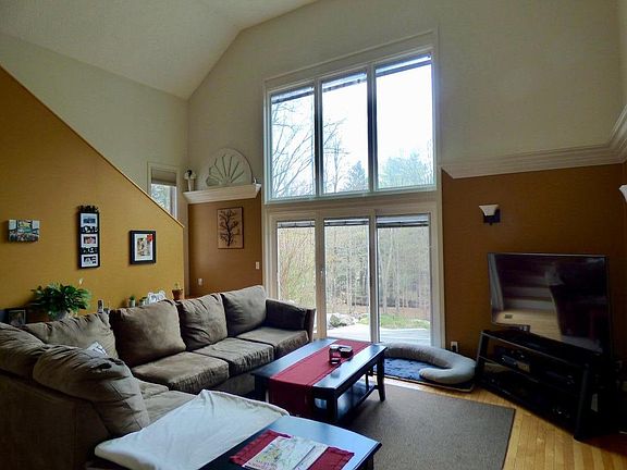 Contemporary country home just 4 minutes from I-89, exit 9. Unfurnished. Open living, dining, kitchen area with propane fireplace. Small first floor bedroom and updated bathroom. Large master bedroom with half bath in open loft. Large mudroom could also be used as exercise room. Deck with boardwalk surrounding the house. Propane heat. The two car detached garage just down the hill from the house has a large heated room (electric heat) above, great for a home office. Direct exit to a path to the house. Fees - renter responsible for propane, electric, wifi/tv/phone, plowing, lawn care. Heat approximately $1800/year. No smoking, prefer no pets but may be negotiable. Maximum of 2 occupants.