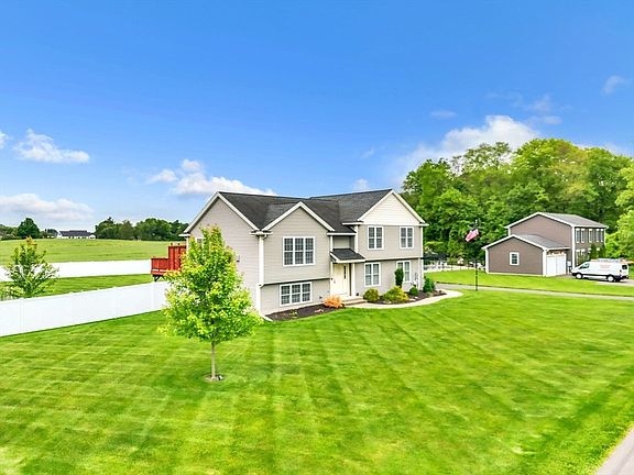 Enjoy year-round views of McCray’s scenic farmland from the back of this charming home. In the fall, unwind on the expanded deck and take in the instant autumn vibes, complete with the charm of a pumpkin patch just beyond your backyard. Inside, a smart and inviting layout features a roomy kitchen open to the dining and living areas, ideal for easy living and entertaining. Three upstairs bedrooms share a full bath with dual access from the hallway and the primary suite, plus the laundry is conveniently tucked right inside. New wood flooring flows throughout the second floor and into the finished lower level, offering a family room, full bath, 4th bedroom or flexible space for guests, home office, or gym. With upgrades like a new furnace, large shed, and privacy-enhancing vinyl fencing, this home blends comfort, beauty, and functionality in a truly picturesque setting. Located just minutes from The Boathouse and Burnelles Marina, The Ledges Golf Club, and the Village Commons.