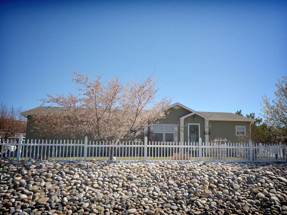 Gorgeous home on 5 acres with a beautiful view of the La Plata Mountains. 3 Bedrooms, playroom that could be 4th bedroom and office could be 5th. 2 bathrooms, 2 large living areas. Open and inviting floor plan. Pellet stove makes home warm and cozy in the winter months. Covered patio and 3 storage buildings included. Landscaped front yard with automatic watering system. Backs up to BLM. MLS #16-557 - Presented by Brandi Wethington or Real Estate Matters 505-325-0744 or 505-320-5381