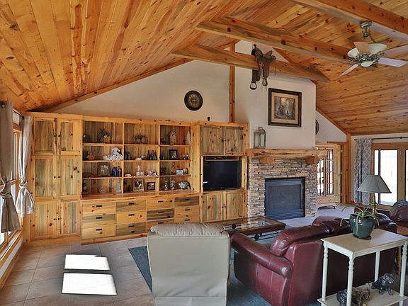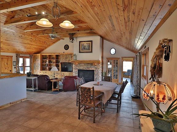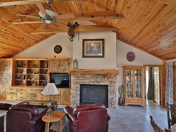 Beautiful 4,376 sq.ft. 5 bedroom, 4 bath home on 19.41 acres with water rights for irrigation. This ranchette features an outside riding arena, hay barn with horse stalls, tack shed with horse stall, automatic heated horse water, 360 degree views. Spacious great room with vaulted tongue & groove blue pine ceilings with wood beam accents, hand crafted shelving, and a rock gas fireplace.