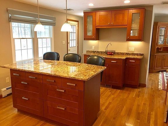 One of North Pembroke's most sought-after locations; Welcome to Captain North Village! This warm & inviting colonial sits back from the street and is in the heart of the neighborhood. Welcoming entryway brings you in to a formal dining room and bonus room (office). The new kitchen has quality cabinetry with stainless appliances, double oven and elegant granite countertops. Designed for entertaining, there's a large central island plus butler's pantry. Beautiful lighting and hardwood floors are elegant & easy to maintain. Step into the family room with soaring cathedral ceiling, skylight, fireplace and slider to the deck. Upstairs you will find a master suite with private bath and three more bedrooms - new paint and carpeting throughout. New windows, too! There's a place for everything: full attic & full basement. You'll be happy to find the partially finished lower level has work space, play space & storage space, with new furnace/ hot water tank. So much here for you! Welcome Home!
