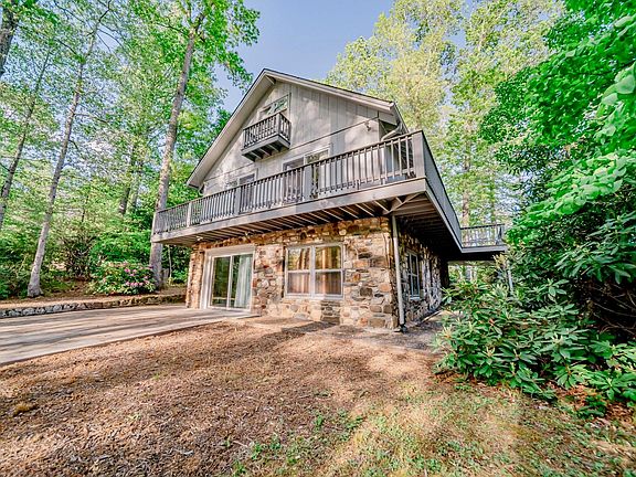 Enjoy a get-away retreat or a year-round home overlooking the 17th hole of Grassy Creek Golf and Country Club! The main level has a cozy yet open floor plan with a vaulted ceiling and glass doors and windows that allow for beautiful outdoor views. Exposed beams give this home a rustic feel. This home is perfect for large family gatherings with a rock fireplace on the main level and a family/billiard room with a second rock fireplace on the basement level. The primary bedroom on the upper level has a private full bath and a sitting area. The main level has two bedrooms and a full bath. The basement level, with its own entrance, has an additional bedroom that is perfect for guests. The outdoor space is amazing with large decks that surround the home complimented with gorgeous mature landscaping. Located a short distance from the views of Blue Ridge Parkway, Little Switzerland, and just 50 miles from the culture of downtown Asheville. This is a home you will not want to miss!