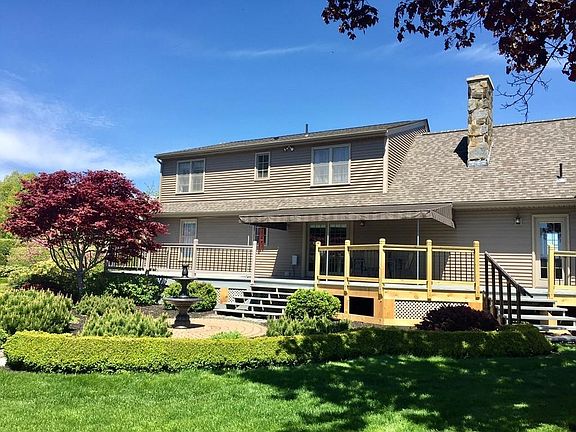 Beautifully appointed and offering an open, interchangeable floor plan is this meticulous, custom built, one owner Cape style home. Located on a 4.5 acre open lot with pastoral, long range views of the Mt Holyoke Range, the yard is a park like setting with gorgeous plantings of floral trees and bushes as well as boxwood hedges. A large back deck with awning over looks the gardens and water fountain - a fantastic place for entertaining and every day living. The first floor is a gracious mix of spacious rooms with beautiful details including crown moldings, chair rails, french doors, hard wood floors and more. A first floor bedroom and bath as well as laundry room are a plus. Second floor California closet a dream come true! Minutes to area colleges and major routes. A warm and inviting place to hang your hat - Meticulous! Matchless! Memorable!