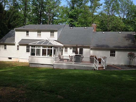 Warm, inviting four bedroom home on a large wooded lot in lovely Warren, N.J. Granite countertops, and stainless steel appliances compliment the maple cabinets in a kitchen that opens up into a bright and sunny conservatory. The large downstairs bedroom with attached bath makes this a complete first floor home, however the three upstairs bedrooms and bath make this a great place to raise a family. The large walk-in closet is in addition to multiple storage areas throughout this spacious home.