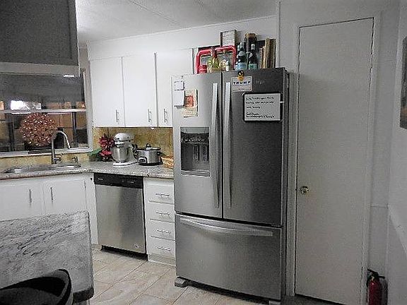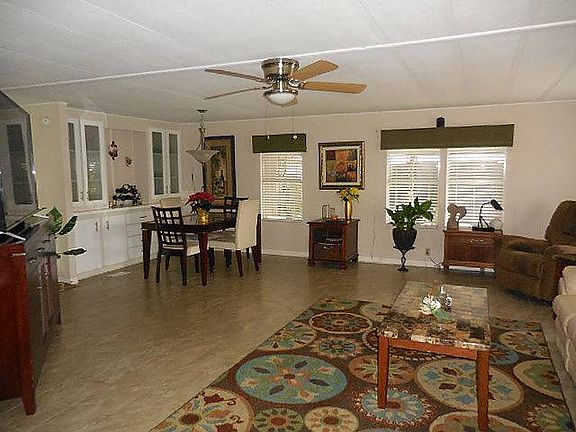 This lovely furnished home offers a large spacious living room with several windows offering light and fresh air. The raised Florida room is located off the living room offering extra room for entertaining family friends. The updated kitchen with granite counter tops has a large stainless steel refrigerator with double doors on top with built in ice maker and a larger freezer on the bottom. This lovely kitchen has lots of cabinets and a pantry. The dining area has a large built in hutch for extra storage. The master bedroom has a master bath with double sinks, granite counter tops, and a shower. There is an inside laundry room with a washer and dryer. There is a carport, golf cart garage and storage rooms. Our community offers a variety of indoor and out activities including our 18 Hole Professional Golf Course, large Club House with Restaurant and Lounge, fitness center, library, shuffleboard, bocce ball, tennis, pickle ball, large heated swimming pool, and so much more. The perfect place to spend your winters or live year round.