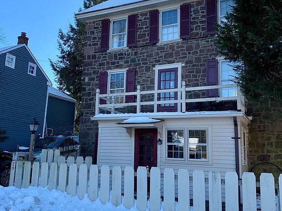 Enjoy a true Bucks County stone canal house, circa 1800, with unrestricted views of the canal. Located on quiet Canal Street, this home features a beautifully landscaped backyard and views of the water while still in the heart of downtown Yardley Boro, walking distance to shops and restaurants and less than a mile from the commuter train. The ground floor has a natural light-filled kitchen and breakfast room with fireplace, an original circular staircase leads you to the large living room. The third floor features a bedroom and full bath, along with flex space - perfect for a home office, small bedroom, or dressing room. Original 1800s built-ins throughout the home provide ample storage space. Finished attic space is heated and air conditioned. Available for 4/1, partially furnished. Perfect for a weekend getaway. This home is zoned C1 - allowing tenants to use as an office or studio as well. Many possibilities.