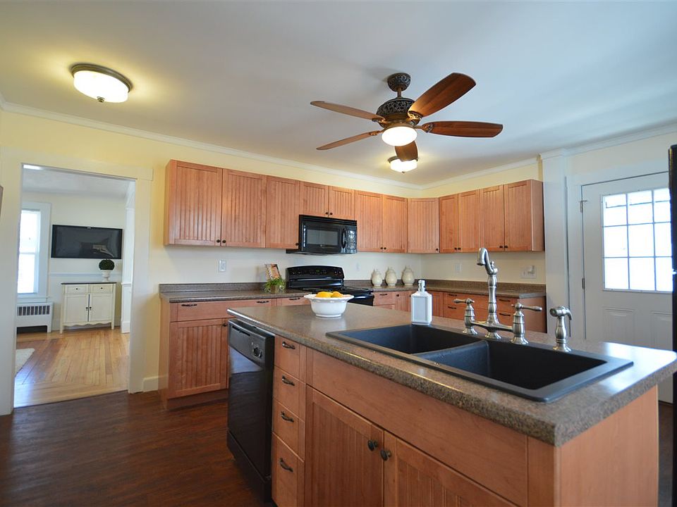 Let the Sellers other projects be your gain...HUGE price reduction!! Lovely 4 bedroom Cape that just received a tasteful makeover! Hardwood flooring throughout the first floor that has just been all beautifully restored. Inviting & large kitchen with plenty of cabinets along with a sink kitchen island/ bar! Fully applianced with dishwasher, microwave & new refrigerator and stove. First floor bedroom with hardwood (or make an office or dining room) & three second floor bedrooms with new carpeting. Lovely first floor full bathroom with marble flooring. Second floor bathroom updated to include new shower/tub unit. Walls & ceilings have been freshly painted. Ceiling fans throughout. New electric panel! New lighting, switches & outlets throughout home. New windows installed. The second level deck has been restored waiting for you to sit & enjoy the warm weather to come. Corner lot with plenty of yard for social gatherings or plant a garden. Off st. paved driveway.