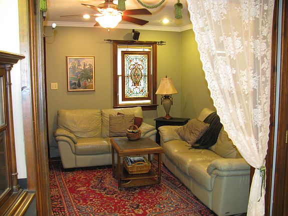 Must be seen to appreciate everything this home has to offer in old world charm. Great kitchen, living, and dining area, all open to one another. Upstairs, the large master bedroom with sitting area and huge walk-in closet. The updated bathroom has a duel vanity and the second floor opens up to a large private deck. The second bedroom with loft looks down over a pool table with an additional bedroom on the third floor. Live in 3/4 and rent the other side. Apartment is an efficiency but creatively designed for a private bedroom. Lower level laundry and finished bonus room. Apartment has its own large outdoor private patio. Currently rented for $675/month. Huge shed that has water and electric and an upper level that connects to the second floor patio.