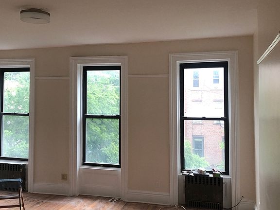 Be the first to reside in this just-renovated apartment located on the 3rd floor of a historic brownstone in Fort Greene, Brooklyn. Date & Amenities: Available to move-in as soon as the paint dries and the brand new appliances are installed! There will be stainless steel gas range and refrigerator/freezer, dishwasher, has a walk-in shower, 2 bedroom closets, and original moldings, including sealed (non-working) fireplace and decorative mantle. Will update listing photos as work is completed (expected week of June 1). Available for viewing now! Apartment is 506 sq ft. -- see floor plan in photos. Windows are East-facing in bedroom, and West-facing in Living Room. Pets ok. Accessibility: Apartment is accessible via stairs only - stoop stairs plus two flights inside the building. Building owners live in the duplex downstairs and manage the property. Location: Our home is located block from Ft. Greene Park, is 1 block to C, G trains, walking distance (5-7 min) to 2, 3, 4, 5, N, R, Q, B, D trains, and numerous bus lines, and is 5 min to Atlantic Center. Utilities: Hot water is included. Heat (gas) & electric is not included -- each apartment has own accounts, meter & hot water heater. Laundromat 1/2 block away. NO BROKERS Available to show ASAP!