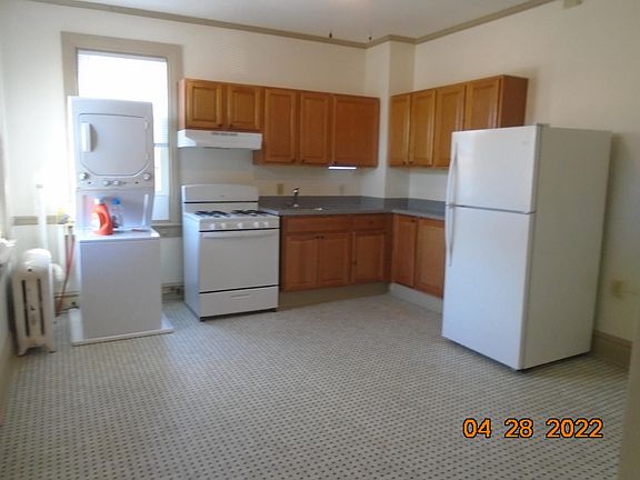 Utilities included with rent. Spacious sunny 5 room apartment in Downtown East neighborhood. Walking distance to dining, entertainment, shopping, and library. Flexible floor plan offers room for dining and office. Large eat-in kitchen with new appliances including laundry center and ceiling fan. Large bathroom with walk in shower and lots of storage, vintage full-length mirror and medicine cabinet. Large bedroom with ceiling fan and huge walk-in closet. Main living area with built in bookcase. Off street parking, monitored by security camera, included. Unit is non-smoking. One time pet fee of $300.00 per pet.