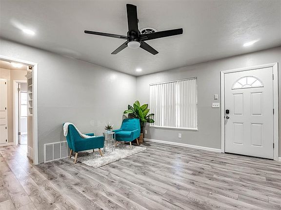 Come check out this beautiful, remodeled home located in South OKC close to highway and in a great neighborhood. This home features 3 bedrooms, 1 and a half bathrooms and 2 car garage. All new flooring throughout the home, laminate in bedrooms and luxury vinyl in common areas. Beautiful, updated bathrooms. Kitchen has granite countertop and stainless-steel appliances. All new fresh paint inside with new light and ceiling fixtures. Bonus room with a lot of windows for natural sunlight can be a sunroom/flex room or a great second living room with a cozy fireplace. The home comes with a new roof and gutters. The backyard is large and has covered patio, gazebo and 2 sizable outbuildings for storages. Don't miss your chance to own this cute home with a great price! Schedule your showing today before this home is sold!