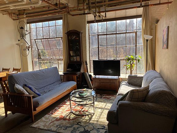 Charming one -bedroom loft apartment for rent in the Historic Sage Street Mill, located in the heart of the Village of North Bennington. Ground level loft with large south facing windows and beautiful views of the courtyard gardens. Perfect for painter, writer, poet, faculty, entrepreneur Open kitchen and living area. New Miele washer and dryer; Bathroom with clawfoot tub and shower; Walking distance to Bennington College, Library, Lake Paran, Post Office, Restaurants and beautiful walking trail to the lake. Pet Friendly building. Nice vibe and community. Rent includes all utilities, in unit washer & dryer, off street parking, heat, electricity, water and fast wi-fi access. If interested, please submit application for this loft through Zillow. Thank-you! Rent includes all utilities: heat, hot water, electricity, in -unit washer & dryer, designated off street parking, snow plowing, wifi access, garbage removal and recycling. First, last and one month security deposit. Application, prior landlord reference and credit check required. No smoking/ smoke-free property. Monthly Pet Fee: $50-$65 per pet. Also, this Loft can be rented for short- term stays: $750 weekly fee/ 2 wk minimum stay, $2,400 fee for 1 -month.