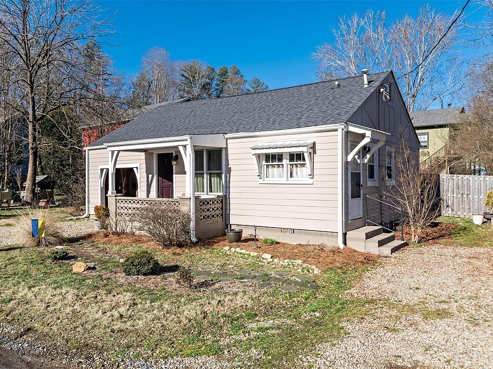 Adorable 2 bedroom/1 bath home in the Railroad Avenue District. It has been lovingly updated and restored inside and out. Original features include wormy wood Chestnut paneling and beautiful Oak floors. Updates include new hardi-plank siding with creative architectural details, roof, kitchen with granite countertops and a moveable island, bathroom with walk-in tile shower, HVAC system, converted carport with bar for outdoor entertaining and nicely landscaped yard. This home's location is close to outstanding restaurants, a variety of shops, a music venue, a brewery and the Brevard Bike Path. This is a great opportunity to live close to downtown in a vibrant neighborhood.