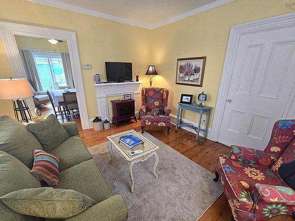 Located on a quiet side street of beautiful Mahone Bay by the sea, this fully renovated Victorian home is a short walk to all amenities and just a hop, skip and a jump to the ocean. The rear garden is level and easily maintained with a large garden shed at the rear. This home features mellowed pine floors throughout the main level, an original front staircase and original trim-moldings throughout. There is a powder-room conveniently located off the front foyer. The living room is to the left as one enters the front hall, with a separate dining-room to the rear of the living room, and a large kitchen with island at the rear of the front hall - adjacent the kitchen. On the second floor the larger of two bedrooms spans the full width of the house, with the second bedroom adjacent the family bath at the rear of the house. The wiring in the home has been upgraded with blown-in insulation in the walls and attic. All the windows have been changed and the outside of the house has been freshly repainted. This home features a ductless heat-pump for heating and cooling with one head in the living room and the second head in the primary bedroom. This charming home is conveniently located, adjacent the historic, decommissioned Mahone Bay School which serves as a community centre for adults, offering courses, lectures and a fitness facility. A corridor of trees provides privacy between the former school and this home. A gentle lifestyle, in a peaceful location, in what has been deemed one of the most beautiful small towns in the country.