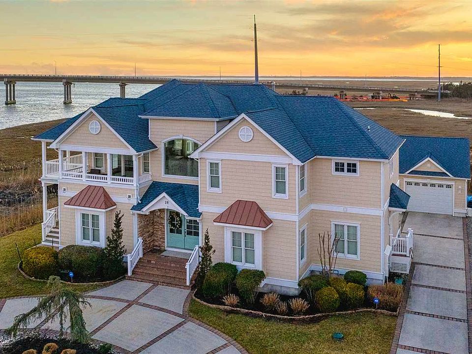 What a fantastic opportunity to own a spacious 4 bedroom/4.2 bath single family home just minutes to Avalon's beaches, shops, dining & recreation with unbelievable sunset and water views! This upside down floor plan allows easy flow to entertaining areas, large family gathering spaces and private bedroom suites with their own dedicated bathrooms. Upscale finishes throughout including wood flooring, stainless appliances, granite tops, custom cabinetry and paint palette. This open and airy, 2 story design allows for soaring ceilings throughout the great room and high ceilings throughout the first floor area. A large family room off the first floor equipped with bar area and access to a rear deck with amazing views of the wetlands. 3 spacious bedrooms featuring private baths for each, a powder room accessed via the hall and full size laundry room round out the first floor living area. The second floor great room features an abundance of natural light, vaulted ceilings, fireplace, well equipped kitchen with stainless appliances and unbelievable bay and sunset views from the wrap around deck! A powder room and spacious master suite with walk in closet and private bath with double vanity, walk in shower and luxurious soaking tub round out the second floor. A detached garage large enough for your vehicle along with storage for all your beach gear, bicycles etc is situated off the generously sized drive way - lots of off street parking for families and friends to come visit. This single family home is located in the lovely Seabreeze neighborhood just minutes from downtown Avalon. Sellers reside year round so advance notice for showings is necessary. Furnishings as well as possession are negotiable.