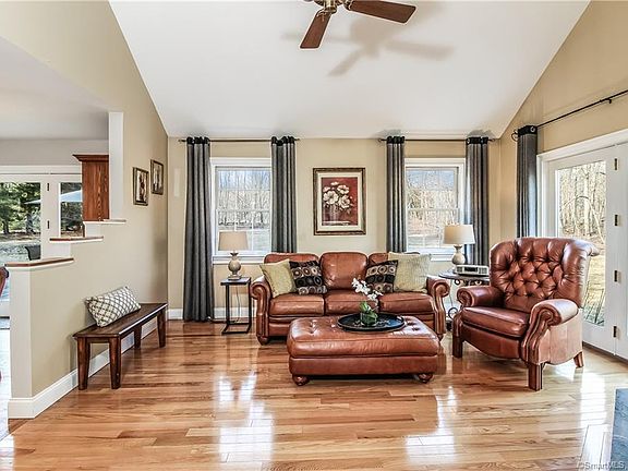 Welcome home to this custom designed 8 rm 3 br, 2.1 bth colonial set on a level lot in a neighborhood setting. Light bright and open with the ideal flow. Kitchen updated with quartz counters and stainless appliances with informal eating area open to family room/ great room with vaulted ceilings, fireplace and gleaming h/w floors. First floor office with built ins, dining room, guest bath and first floor laundry. The second level includes master suite with full bath and 2-3 additional bedrooms including one that has a separate back staircase access that could be bonus rm or game room. Deck across back of the house allows you to relax and enjoy the day or get the grill ready! The back yard is the perfect place to enjoy the outdoors as the weather turns mild. Located with easy access to RTE 2 great for commuting to Hartford or New London. Lower level could easily be finished with walls already sheet rocked.. could be game room or media/movie room. This is it!