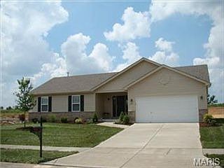 ONLY 5 MINUTES FROM WENTZVILLE. This popular floor plan has approximately 1350 sq.ft. of living space. Other great features include hardwood floors, maple cabinets, granite countertops, 2 panel doors, stainless steel appliances, brushed nickel hardward and fixtures (or Oil Rubbed Bronze), sodded yard, architectural roofs, enclosed soffit & fascia, some brick on front elevation and much, much more!!! Come see for yourself! Home is eligible for no money down/ 100% USDA financing. Home is under construction so some selections still available. Don't miss the opportunity to live in this awesome neighborhood.Great Location, Impeccable Craftmanship, Your best choice for a new home! (Photos shown are similar but not exact to the home being built)