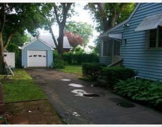 Light blue vinyl sided cape. Last house on Dead End Street.Big fenced in yard.Great house for young family.Roof replacment, windows,new steam boiler all done recently.Plenty of room for expansion! Excellent,nice,quiet neighborhood.Medford at its best!!!