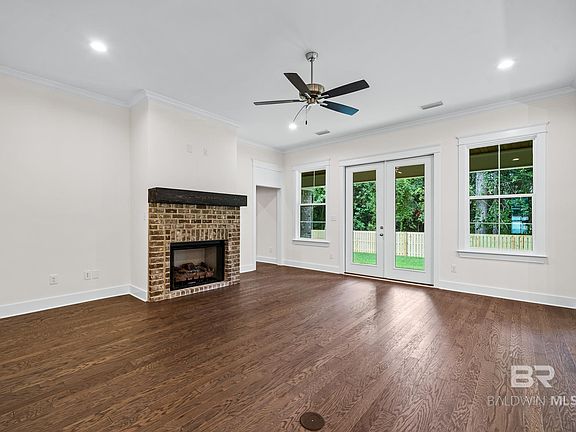 Discover Your Dream Coastal Home in Baldwin Countyl Built by Tower Homes, a trusted builder with over 30 years of experience, this home offers luxury and convenience. This home is perfectly situated with a wooded backyard, just steps from the serene Blakely River. Located near Hwy 225 and only 2 miles from 1-10, it offers easy access to the Eastern Shore and a quick commute to Mobile. Built to Gold Fortified standards, this home features an open floor plan with elegant wood floors, a spacious living area, and a gourmet kitchen with a large island, quartz countertops, and energy-efficient stainless steel appliances.The luxurious primary suite includes a generous walk-in closet and a spa-like bathroom complete with a soaking tub, separate shower, and double vanity sink. Enjoy outdoor living on the covered back porch overlooking a flat lot, with a rear garage entry adding convenience. Additional features include a double garage, energy-efficient double-pane windows, termite bond, and a one-year home warranty. Experience the best of coastal living-schedule your showing today! **Expected construction completion in September 2024** Buyer to verify all information during due diligence.