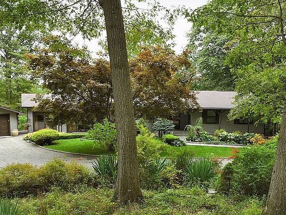 A lovely California style ranch nestled on a hill, very private, with lots of windows to bring the outside in. Updated gourmet kitchen with skylights, small deck off kitchen for breakfast, Living room with fireplace and skylights, french doors to a large deck, sunken dining room, library, large media room, master bedroom has french doors to deck, hardwood floors throughout, some tile, updated master bath with radiant heat, two extra bedrooms with updated bathroom, two zone central air, whole house generator, 4 car insulated and heated garage, views of golf and mountains in winter, across the river from West Point, 2.6 miles to Garrison train station, 1 hour to Grand Central, 4 miles to historic Cold Spring for shopping and dining,and river front, Fahnestock Park 15 minutes away for kayaking,, swimming, boating and hiking trails. Principals only. Shown by appointment 845-381-0106.