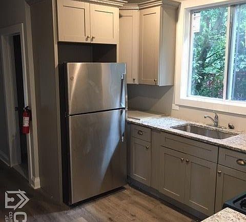 Welcome to this completely remodeled first floor apartment nestled on a quiet street! The apartment features new windows, new flooring, new lighting. It was freshly painted and has a new bathroom and new kitchen with granite counter tops and new appliances. The cherry on top is a cute front porch.