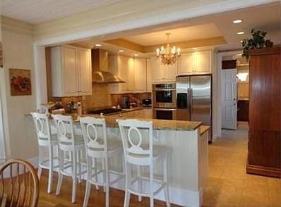 Spectacular Beach Front Victorian! Barefoot steps to Onset Bay. Fabulous views from your rocking chair on front porch! Waterside patio. 5 Bedrooms and 2 Baths. Renovated open plan, custom kitchen with Granite Counters, stainless appliances, hardwood floors, and pantry kitchen area. Living Room with Fireplace. First floor den,outside shower w/ dressing area. Oversized lot and more! Kitchen chandelier and 2nd refrigerator excluded.