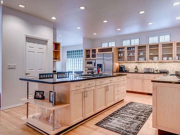 Sophisticated Modern Luxury on Quiet Culdesac & Backs to Greenspace.Sunset views from multiple decks.Impeccably cared for with beautifully remodeled kitchen and master bath.Streaming natural light throughout.Extensive wood floors,Slab granite,Quartz,Stainless Applcs,Gas cooktop,w/i Pantry,Butlers pantry,Cozy Family Room w/gas fireplace,Large patio w/water feature,Large indoor shop and storage rooms,Garage wired for Tesla.