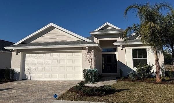 Under Construction. This brand-new, never lived-in home is situated on a water-view homesite in Town Center’s only single-family community, offering both scenic views and unmatched convenience in Palm Coast. The Westbridge Model features 3 bedrooms, 2 bathrooms, a covered lanai, a large brick paver driveway, and concrete sidewalks, creating strong curb appeal and functional outdoor living. Inside, the home showcases thoughtfully selected upgrades throughout. The kitchen is highlighted by LX Viatera quartz countertops, Wellborn wood cabinetry with a painted finish, an upgraded herringbone tile backsplash, and a double trash pull-out conveniently located next to the sink. Bathroom #2 also features LX Viatera quartz vanity countertops, continuing the elevated finishes. Laminate flooring extends through the foyer, kitchen, café, great room, primary bathroom, hallway to bedrooms, and utility room, while the primary bedroom and walk-in closet feature upgraded tile flooring for a refined finish. Located in Coastal Gardens, Paytas Homes’ newest Palm Coast community, this neighborhood introduces fresh exterior designs and modern floor plans while maintaining the quality craftsmanship Paytas Homes has been known for over decades. Projected completion: January 2026. *Broker has business affiliation with Seller.