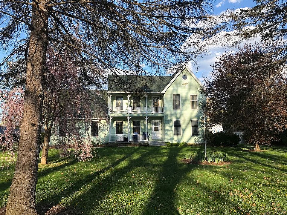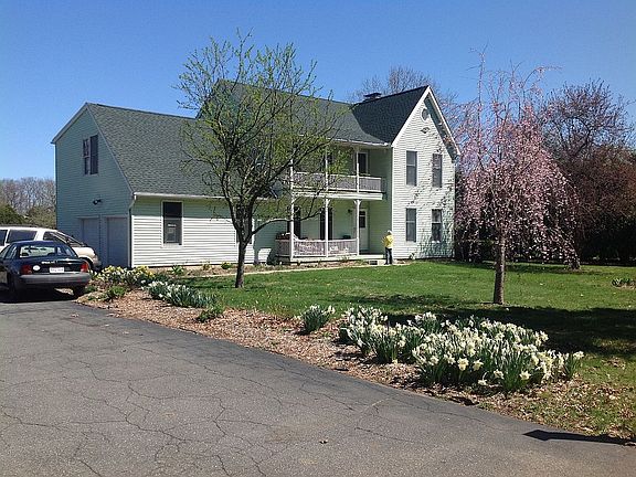 Located right off of Route 9 between Amherst and Northampton, we are selling our lovely home, perfect for a growing family and/or farmers in a prime location. Although marvelously convenient to shopping as well as both wonderful college towns, the small side street on which this property sits is startlingly quiet and rural. Every one of the eight houses on the street is backed up by acres of farmland. The house sits on one acre of land with beautiful fruit trees including an exquisite weeping cherry and two crabapples and a Japanese maple in the front, roses and other flowers lining the driveway and in front of the house. The backyard is spacious, with flourishing raspberries, apple trees and other assorted fruit and nut plantings, as well as plenty of room to throw a frisbee or a ball for young athletes. There is a patio with local stone for outdoor enjoyment. 40 solar panels provide year-round free electricity. 1.69 acres of farmland behind the back yard complete the property. For the last several years, the farmland has been farmed by Next Barn Over, a local organic CSA (Community Sponsored Agriculture) in return for a seasonal share of the bounty to be acquired weekly. The 3 story, multi-bedroom house has 2570 square feet. In addition to an oversized living room, (currently serving a dual purpose as living room and music room,) there is a roomy kitchen, full bath and sitting room/dining room on the first floor, with an attached laundry room/mud room. The second floor includes a master bedroom/full bath, additional full bath, three bedrooms and a two-room mother-in-law apartment. On the 3rd floor is a beautiful finished room with an attached alcove and storage, as well as additional storage across the hall. The large unfinished sealed and dry basement includes an additional partially finished room as well as a shelved food storage or "root cellar". There is also an attached oversized two-car garage with plenty of shelving and additional storage.