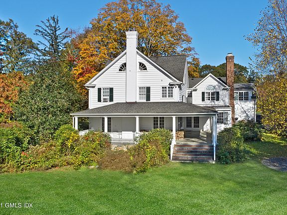 Greeted by stone pillars & circular driveway this classic colonial w/elegant spaces beautifully blends w/casual living. Over 6000 sq ft perfectly situated on level 1.24 ac property on prestigious Stanwich Road yet minutes to Greenwich Ave, trains & all conveniences. Multiple French doors lead to stunning wrap around veranda overlooking private level yard. 2008 addition includes large mud room w/front & rear yard access, powder room, private office, family room w/French doors off kitchen & back staircase to beautiful sun filled multipurpose room w/full bath, all with radiant heat. Kitchen w/large center island, Viking 6 burner dbl oven range, sub zero etc. Plans are available for an amazing outdoor retreat for pool, pool house, pergola, fireplace & shower. FAR may allow 15000+ sq ft.