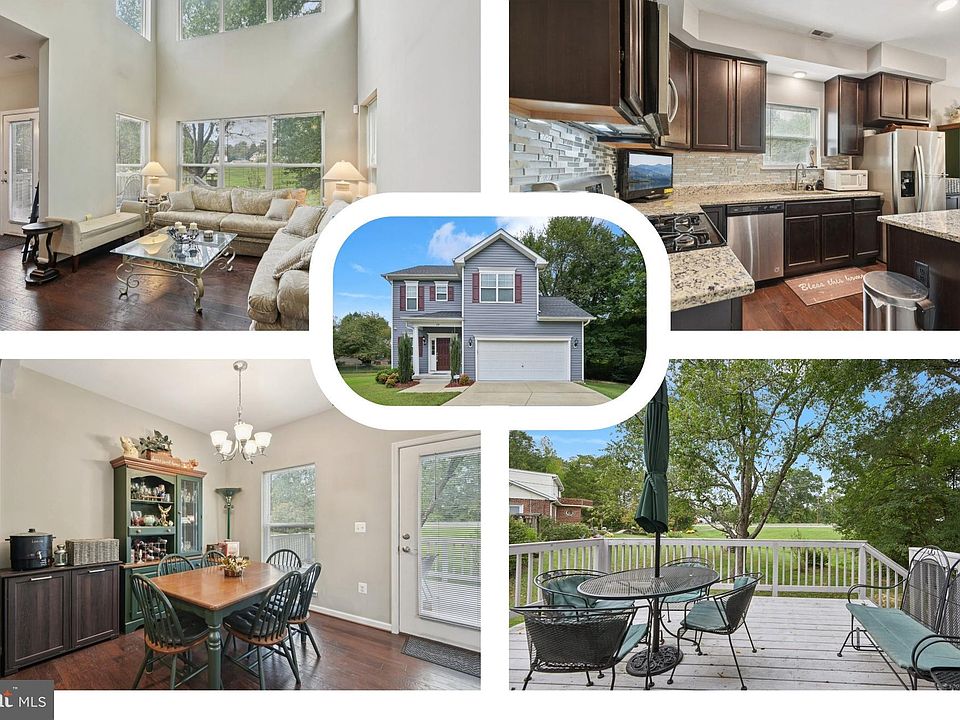 Welcome to the JOLAIN Floor Plan by Rainbow Homes | 3BR | 2.5BA | Built in 2019 in a quaint newer community! Tucked away on a quiet cul-de-sac street, step into modern comfort in this beautifully crafted two-story home built in 2019. Designed for low-maintenance living, this home features durable exterior siding and long driveway that leads to a two-car garage. Inside, you'll love the open-concept layout with 9-foot ceilings and a ceiling fan, rich hardwood flooring throughout, and a striking two-story great room filled with natural light. The gourmet kitchen is equipped with Energy Star® stainless steel appliances, 42" birch cabinetry, and a stylish new backsplash, granite countertops, and a spacious, lit pantry closet—perfect for home chefs and entertainers alike. Upstairs, the spacious owner’s suite with a ceiling fan and a walk-in closet offers a luxury spa bath complete with a dual vanity, soaking tub, and separate shower. The rooms have ample closet space, and there is additional under-staircase storage. Enjoy outdoor living with a private deck, professionally landscaped yard, and Leaf Filter® gutters for year-round protection. Upgrades include a Smart Alarm System and security cameras surrounding the home for added peace of mind. This home blends elegance, efficiency, and security—all located on a serene cul-de-sac that feels like home the moment you arrive. Mortgage savings may be available for buyers of this listing.
