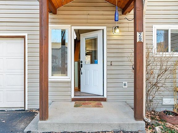Charming, in-town, Sunridge Village townhouse is close to Fort Lewis College and a trolley stop. This property is in spotless condition with gleaming hardwood floors. The spacious kitchen, dining and living room areas and 1/2 Bath are on the main level. A local artisan made the custom wooden patio doors using wood recycled from the Missionary Ridge fire. Upstairs is a convenient second floor laundry and 3 bedrooms and 2 full baths. The seller installed the central air. The HOA is $500 quarterly and includes outside maintenance, landscaping and snow removal (not driveway). Attached 1 car garage is extra deep with storage in the back. (Seller is already packing, excuse all the boxes.) The HOA does not allow dogs or short term rentals.