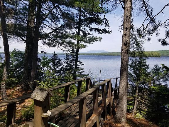 Sweeping views of the Katahdin Range on the shore of this 1948 property. Private sandy beach with over 250+ feet of crystal clear water front. The property offers an open floor plan on the first floor with two bedrooms on the second. One three season insulated room and a closed in front porch, over looking the lake.