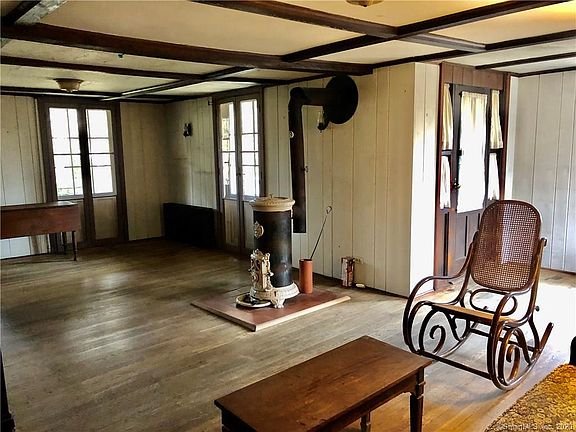 Feel like you've stepped back in time over 200 years ago! This unique stone and stucco antique is waiting to be brought back to its original grandeur. With 4 bedrooms and 2 1/2 baths, the spacious third floor walk-up attic with two staircases can also provide space for additional bedrooms, an artist's studio, craft room, play area or whatever your needs may be. Come in from the amazing wraparound porch and enter into the foyer with French doors to large living room with lots of windows and a wood stove to keep warm by. The dining room is perfect for accommodating a large crowd and the eat-in-kitchen with vaulted beamed ceiling, old farm-style sink and gas stove for cooking looks out onto the beautiful grounds in back. Cozy up to the stone fireplace in the study on those cold winter nights. Hardwood floors are in every room on all three levels. Full dry basement and 200 amp electrical service. The property with stream in back abuts 100 acres of Bethel Land Trust with ponds and trails and not far from Huntington State Park. An old stone well and gazebo add to the charm in imagining what it felt like to live back in the early 1800's. A rare opportunity to own this one-of-a-kind home. Bring your imagination and turn this home into a gem again!