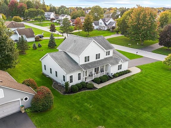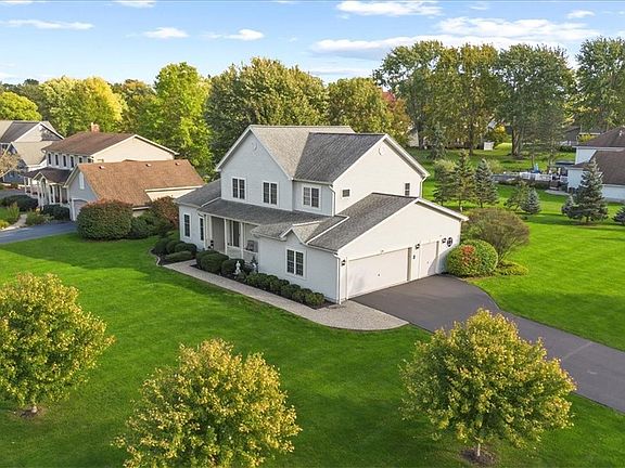 Welcome to 29 Sunset Hill, located on a large corner lot in a quiet cul-de-sac street in the heart of North Chili. Once the sun goes down the custom, low voltage landscape lighting turns on, creating a beautiful ambiance to the home. Enjoy an extra sense of privacy with ALL tinted windows on the entire house. At 2,366 sq/ft and 9ft ceilings this home is spacious! The layout in this home is choice, featuring a large kitchen with an island, a formal dining room, and space for a kitchen table that flows right into the family/ living room with a gas fireplace. The sliding glass doors from the kitchen lead to a beautiful composite deck installed in 2020. Downstairs also includes a first floor laundry room AND an extra "flex" room that could be used as an office/ den or another bedroom. Upstairs you'll find FOUR additional bedrooms including the master suite with a connected full bath and closet.