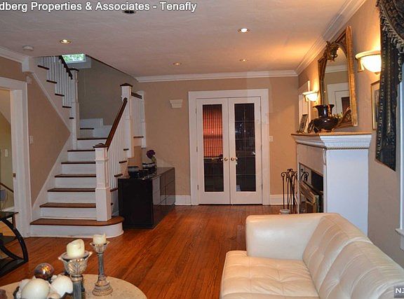 Tenafly Charmer! Lovely colonial expanded and updated offers a nice size entry foyer leading to the formal living room with wood burning fire place(aprx. 24x13.5 ft) with double French doors leading to cozy family room and French doors leading to the Formal Dining room (aprx. 16x13 ft), Eat in Kitchen with wood cabinets, granite counter tops, stainless steel appliances (aprx. 26x21 ft.) pantry, powder room and sliding doors to private paved back yard. Second floor features 2 Bedrooms ( aprx. 16x15 and 11x15 ft) full bath, Large master suite( aprx. 21x15 ft), with walk in closets and full bath with steam shower. Walk up attic to spacious storage. The finished basement has storage, laundry and bonus room space. Hardwood floors throughout, Central air, gas heat. Top ranked Tenafly schools. Near transportation, parks and lovely downtown Tenafly. Minutes to Manhattan. This is the lovely Tenafly home you've been waiting for, at an affordable price.