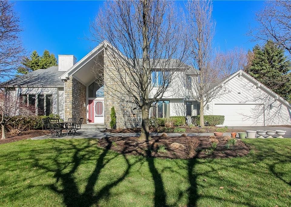 New listing in popular Park Square neighborhood! Located minutes from the Village of Pittsford, this home spans over 3,000 sq feet! Over-sized windows provide ample amounts of natural lighting, while the high-ceilings & marble flooring in the foyer provides a sense of unsurmountable space! A formal sitting rm & dining rm w/wainscoting allows for private entertaining, while the spacious eat-in kitchen/family rm combo & sunny Florida rm is perfect for informal gatherings! Major features of the kitchen include granite counters, recessed lighting, built-in range & wall oven! The 1st flr is complete w/large laundry rm, mud rm off the garage, & half bath! Upstairs you will find 4 spacious bedrms & 2 full baths. The master suite shines w/a walk-in closet, granite counters, his & her vanities & spa-like whirlpool tub! The exterior landscaping is meticulous & features a paver-patio, fish pond & hot tub! Don't miss out on this opportunity to own this beautiful & spacious Pittsford home!