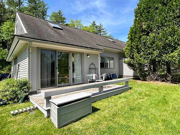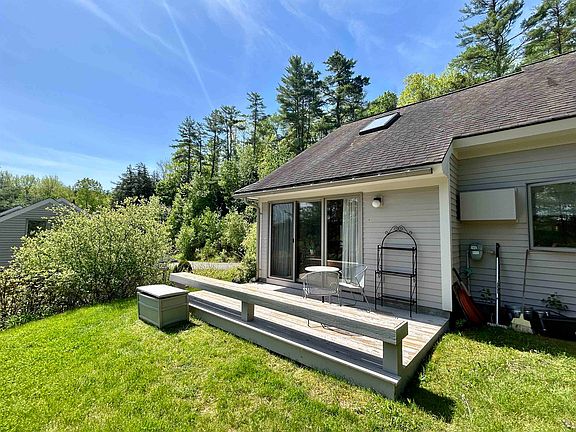 Light and airy contemporary located in Sterling Springs, a short drive to I-91, Dartmouth College, DHMC and all Upper Valley amenities. The condo is a lovely end unit, with sliding glass doors opening to recently painted back deck, a surprising amount of privacy offered with the established landscaping. The tidy kitchen has hardwood floors, plenty of counter and cabinet space, and a large walk in pantry. The living/dining room has wonderful light with large South facing windows. The first floor is complete with a primary bedroom suite with two closets, one walk-in, and an oversized bathroom with laundry. Bonus space upstairs providing an option for guests with a generous loft space, a 3/4 bathroom and great storage including two attic spaces and the utility room. The bathrooms have been updated with marble counters, beadboarding and vinyl plank flooring. Landscaping, snow removal, trash/compost/recycling are included in your condo fees. Walk to the in-ground pool during the warm summer months and enjoy the ease of condo living!