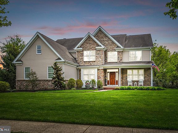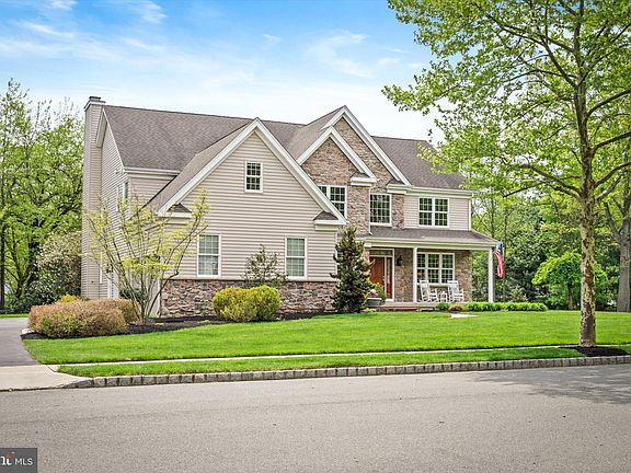Welcome to 29 Tamar Ct, a custom crafted and meticulously maintained Lawrenceville Colonial with covered front porch and stamped concrete front and back walkways on over half an acre of manicured grounds. The welcoming front entry showcases a leaded glass door, side lights and transom leading to a 2 story foyer with elegant moldings, open oak stairs and rich hardwood flooring. There is formal moldings abound in the open living and dining room combo, a space perfect for numerous gatherings. The semi-custom maple kitchen includes sleek granite countertops, new stainless steel appliances, ceramic flooring and a breakfast nook with patio doors leading to an elegant multi-tiered paver patio and entertaining area. Connected to the breakfast nook is a generously sized, two-story family room offering floor to ceiling stone fireplace flanked by bright, sunny windows. Completing the family room is a two-story window wall and open oak rear stairs leading the the second floor. Additionally, on the first floor is a study with closet, powder bathroom, and a laundry mudroom combination with access to the vast 3-car garage. The upper level includes a grand primary suite offering an oversized walk-in closet, sitting area and bathroom fixed with a two-person jetted whirlpool tub and large vanity with dual sinks. Additionally on this level are two Jack & Jill Bedrooms with bathroom connecting the two and a fourth bedroom with private, en-suite bathroom. The lower level is finished with a game room of approximately 1000 sqft, daylight exit with access to the patio in the rear of the yard, and an unfinished utility storage area. Other features of this notable home include hardwood flooring throughout the entire first floor, 9+ foot ceilings throughout, custom shades adorning all windows and a walk-in kitchen pantry all set on a quiet cul-de-sac. Located conveniently minutes to I-95 and Route 1, train stations to Philadelphia and New York, this home is ready and in great condition for its new owner.