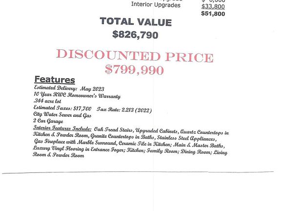 Beautiful new construction on a lovely private circle in Howell Township! Spacious 2703 sq ft 4 Bedroom, 2.5 bath colonial under construction ready for occupancy approx. May 2023. This home sits on a beautiful lot with many upgrades including premium siding and stone exterior. Spacious kitchen with upgraded cabinets, stainless appliances, quartz counters, center island and tile floor. Huge master bedroom with 2 walk in closets, sitting area and full master bath. Luxury vinyl flooring in foyer, LR, DR and family room. Gas fireplace included with marble surround in the family room. Other special features include full basement, Oak tread stairs, granite counters in baths, gas heat and city water and sewer! Quick delivery approx. May 2023