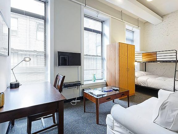 BATHROOM NOT PRIVATE TO THE ROOM, PROFESSIONALLY CLEANED' 3 MONTH LEASE, JANUARY-APRIL Efficiency sized studio ready for you, shares kitchen and bath with others on the floor! -Fully furnished -Multiple layouts available, full over queen bunk bed (perfect for two roommates) or full size bed -All utilities including heat, hot water -TV with streaming capability and local cable channels -Free Wifi -Coin-Op Laundry access on the floor. Owner pays broker fee, prorated by month for short stays! Move in as soon as tomorrow! Flexible lease options, available asap. Note: Leases under 90 nights add 17.95% occupancy tax! First and last months rent due at lease signing. Accepting most offers for move in's between now and September!
