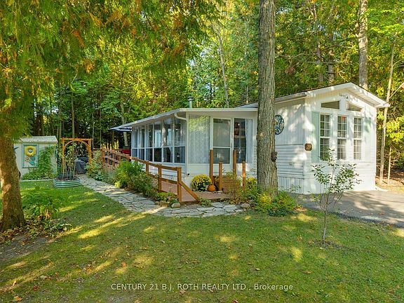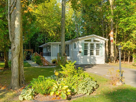 Welcome Home! This bright and cheerful home is nicely decorated and move-in ready. Pride of ownership is apparent in this clean and tidy well-maintained bungalow. Stainless steel appliances add a modern touch to the kitchen. The bedroom fits a king-size bed and has built-in cabinetry. A large sunroom provides additional living space and is perfect for overnight guests. The spacious deck is great for entertaining, surrounded by mature trees for your privacy. Recent updates include a new sunroom and laminate flooring throughout. Monthly fee is $639.63 which includes land lease rent and property taxes. Clubhouse amenities include a heated pool, sauna, library, billiards room, exercise room, woodworking shop, and main hall. Enjoy the many activities including cards, games, darts, shuffleboard, horseshoes, bingo, dances, exercise classes, and more! Make this your new home in this friendly, year-round adult-living community.