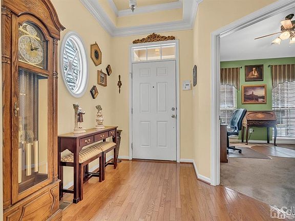 Welcome to Hearthstone, an adult comminity 55+. Enter this free standing single family home with an open floor plan featuring an entry foyer with a tray ceiling which opens into a formal dining room and look into an enormous great room with sloped ceiling. The eat-in kitchen with corian counters, ceramic backplash, microwave (3yrs.) garbage disposal 3yrs.) pantry and glass sliders opening to composite deck; all have hardwood flooing. A primary en-suite with a tray ceiling, California walk-in closet, double vanity, stall shower. A second full bath next to the second bedroom as well as an offfice/den/4th bedroom; and laundry room complete the main level. Open staircase leading up to an open loft, third bedroom and full bath. A large full basement features a recreation room, half bath, excerise room, workshop, and storage areas. A 2 car garage and beautiful landscaping and guttter guards; a delight to see.